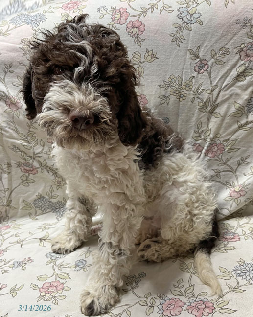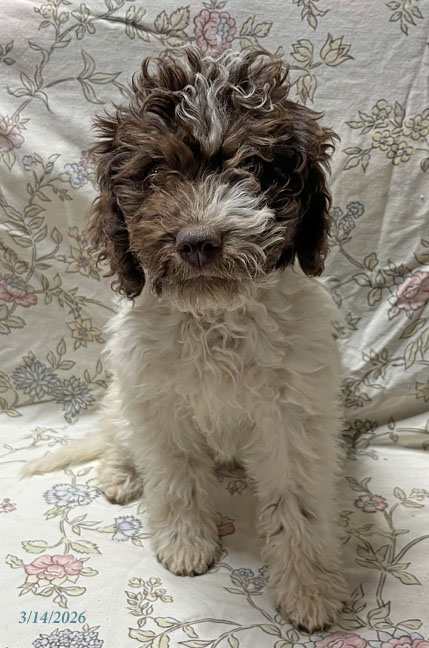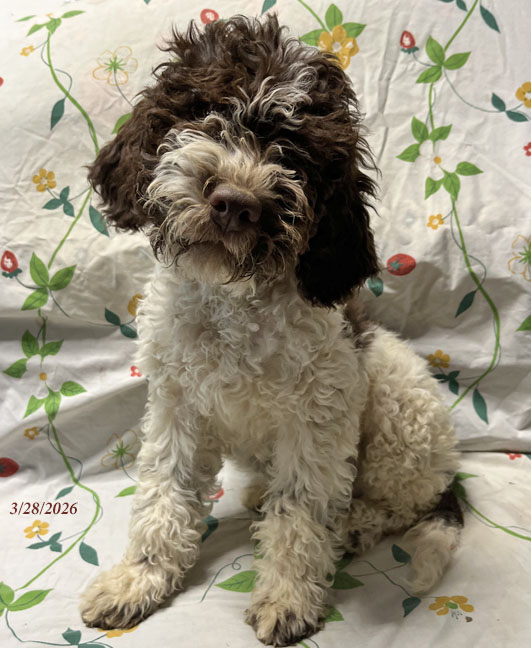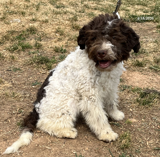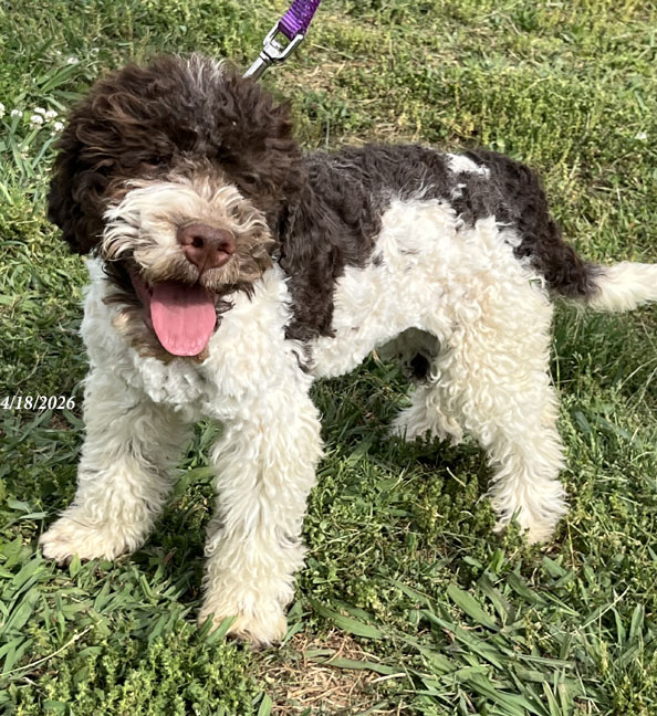 Puppy #8"Green" - Brown & White Male "Alfredo" has gone home and is already hunting for truffles! |