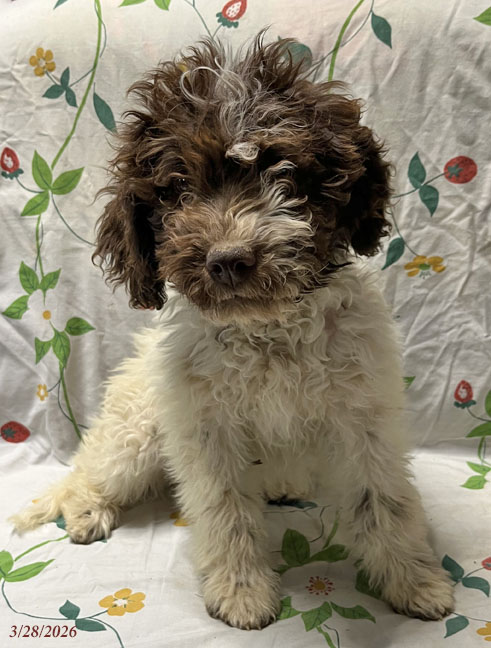 Puppy #8"Green" - Brown & White Male "Alfredo" has gone home and is already hunting for truffles! |